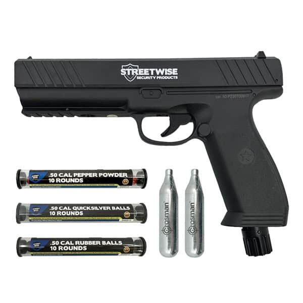 Fight back against increasingly aggressive and brazen criminals with the latest self-defense product: The HEAT Pepper Launcher. Made by Streetwise Security Products, the leader in the personal security products industry for nearly 35 years, the HEAT fires .50 caliber pepper rounds, metal balls, or rubber balls at almost 500 feet per second to allow you to safely defend yourself from up to 60 feet away. Not only will your target experience the powerful impact from the round but when firing Streetwise pepper rounds, they will also be instantly enveloped in an incapacitating pepper cloud. It allows both civilians and law enforcement officers to subdue criminals with less than lethal force.